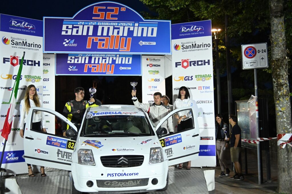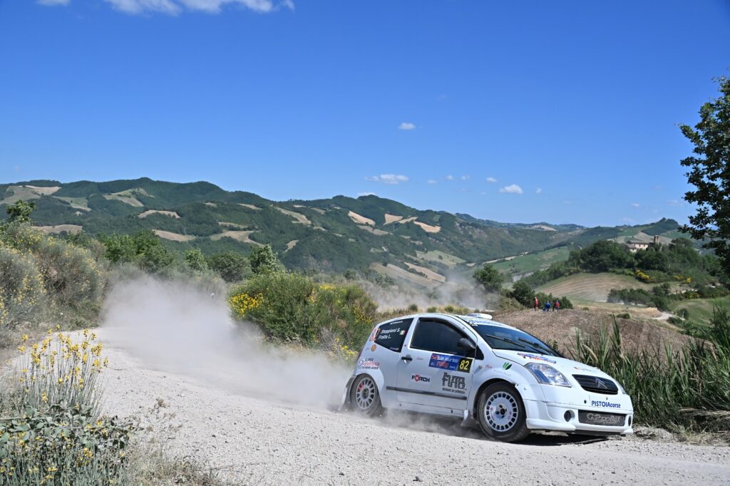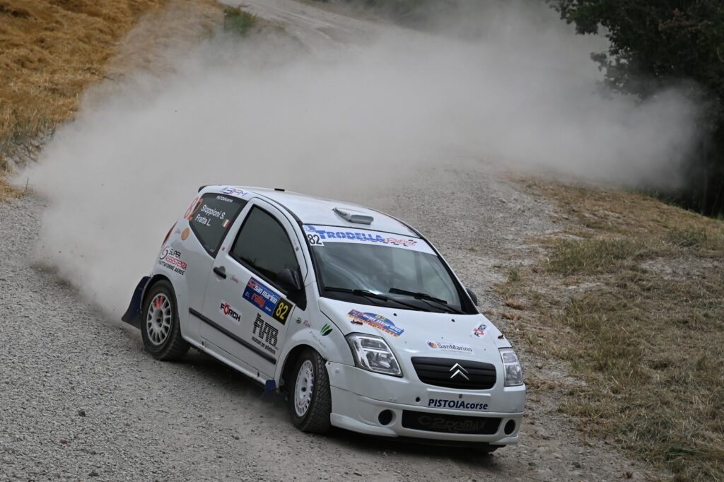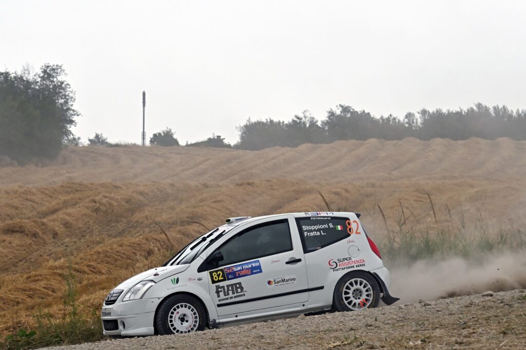 Sugli sterrati del 52° Rally di San Marino, Saverio Stoppioni e Lorenzo Fratta sono stati autori di un’altra prestazione maiuscola a bordo della Citroen C2 di classe RS 1.6 Plus.